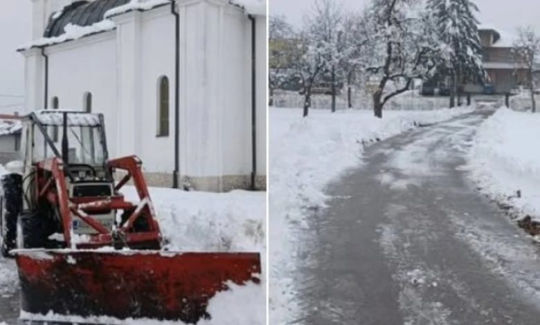 “Naš komšija Ibro Jahić jutros je očistio put i portu hrama u Dubnici kako bi mogli održati službu na Božić u 8 sati u hramu Svetih Joakima i Ane u Dubnici. Od Boga mu zdravlje i veliko hvala”, stoji u objavi.
