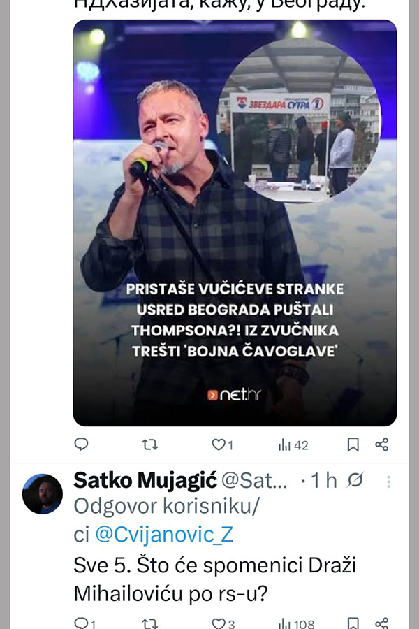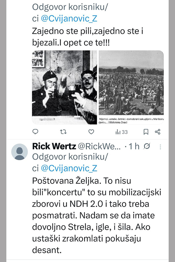-Najoštrije osuđujem užasne i uznemirujuće scene iz Širokog Brijega sa koncerta Marka Perkovića Thompsona. Zgrožena sam ustaškom ikonografijom, pokličima i simbolima zločinačke NDH koji su obilježili ovaj događaj.