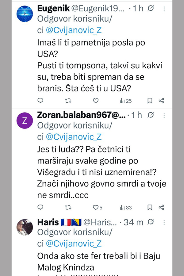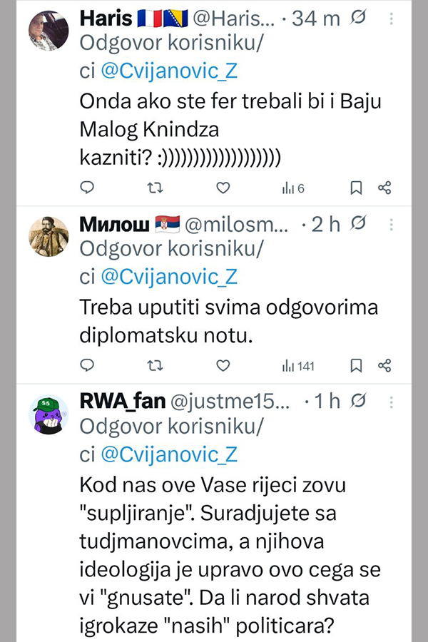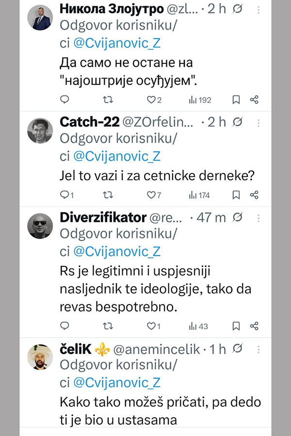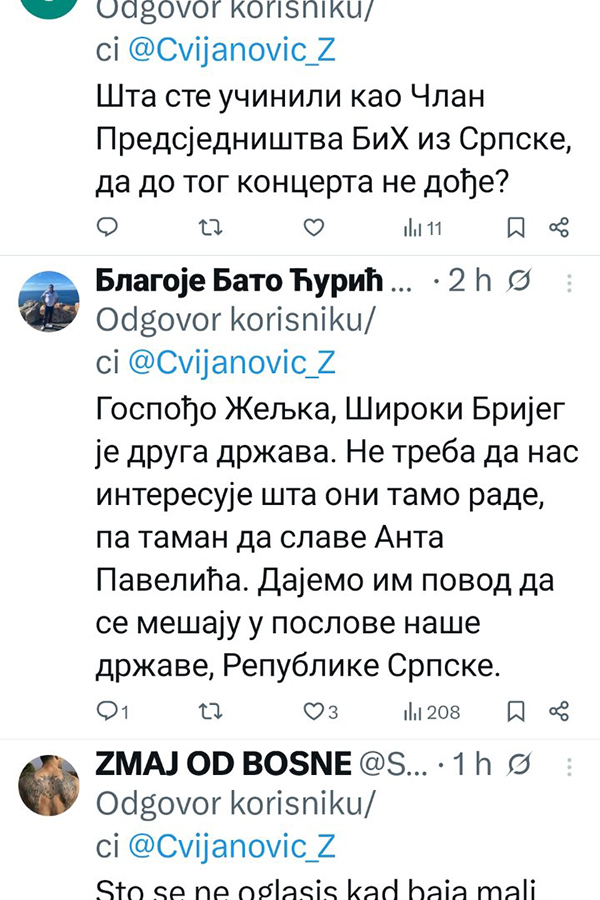 Ne stišavaju se reakcije na društvenim mrežama, nakon istupa Željke Cvijanović, članice Predsjedništva Bosne i Hercegovine.