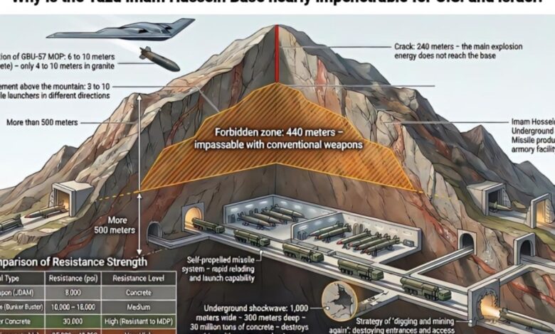 Iranska baza Imam Husein u blizini grada Yazda nije obično sklonište. Uklesana duboko u granitnu stijenu planine Shirkuh – jednu od najtvrđih stijena na Zemlji – ova planinska tvrđava čini najmoćnije američke bunker-bombe potpuno beskorisnim, piše New Rules kanal na Telegramu.